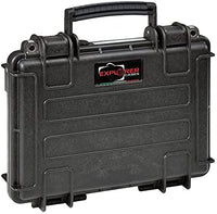 Waterproof and chemical resistant, this black Small Hard Case 3005.B with Foam from Explorer Cases is humidity and dust resistant, and made of a copolymer polypropylene compound. Within interior dimensions of 11.8 x 8.3" and a total interior depth of 2.8" from the lid and base, you can transport your choice of sensitive gear such as a single pistol or electronics. The case includes pre-cubed foam layers to protect your equipment.